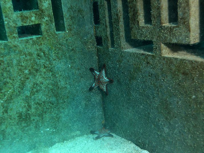 Vista a los 10 meses de su instalación. La obra fue creada para ayudar a generar vida animal y vegetal en el fondo del mar.