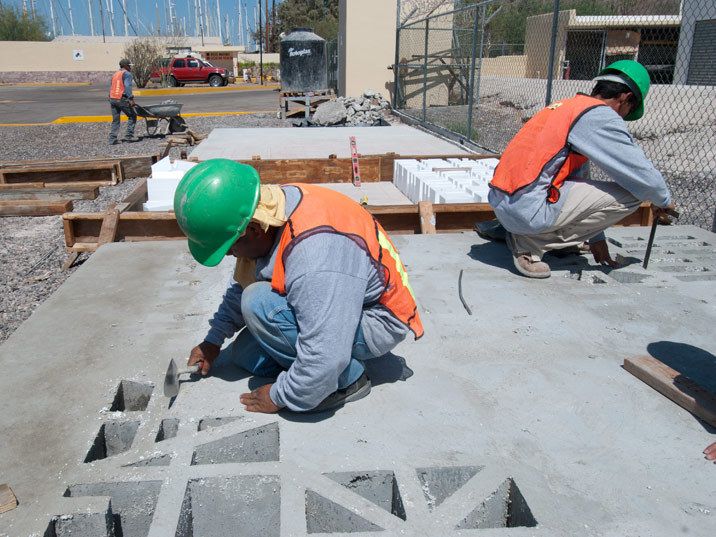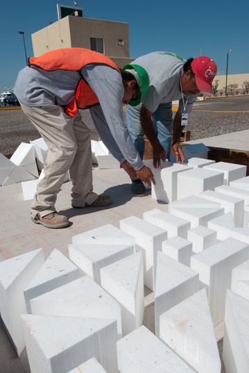 ![Detalle del calado final. Una vez vaciado y seco el concreto, se sacaron las piezas de unicel para descubrir los textos.]()