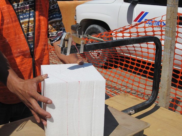 Calado de los textos. Para que los textos de Fray Joseph de Acosta quedaran calados en las celosías, cada una de las piezas se trabajó en unicel y se colocaron en los moldes.